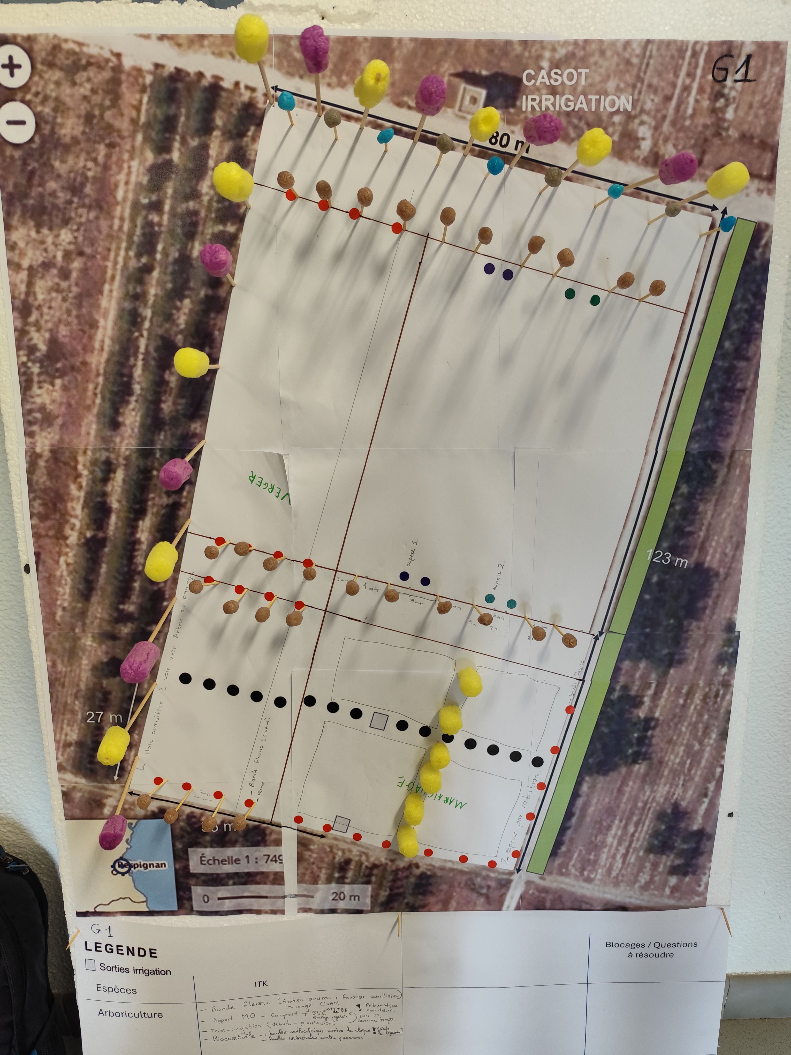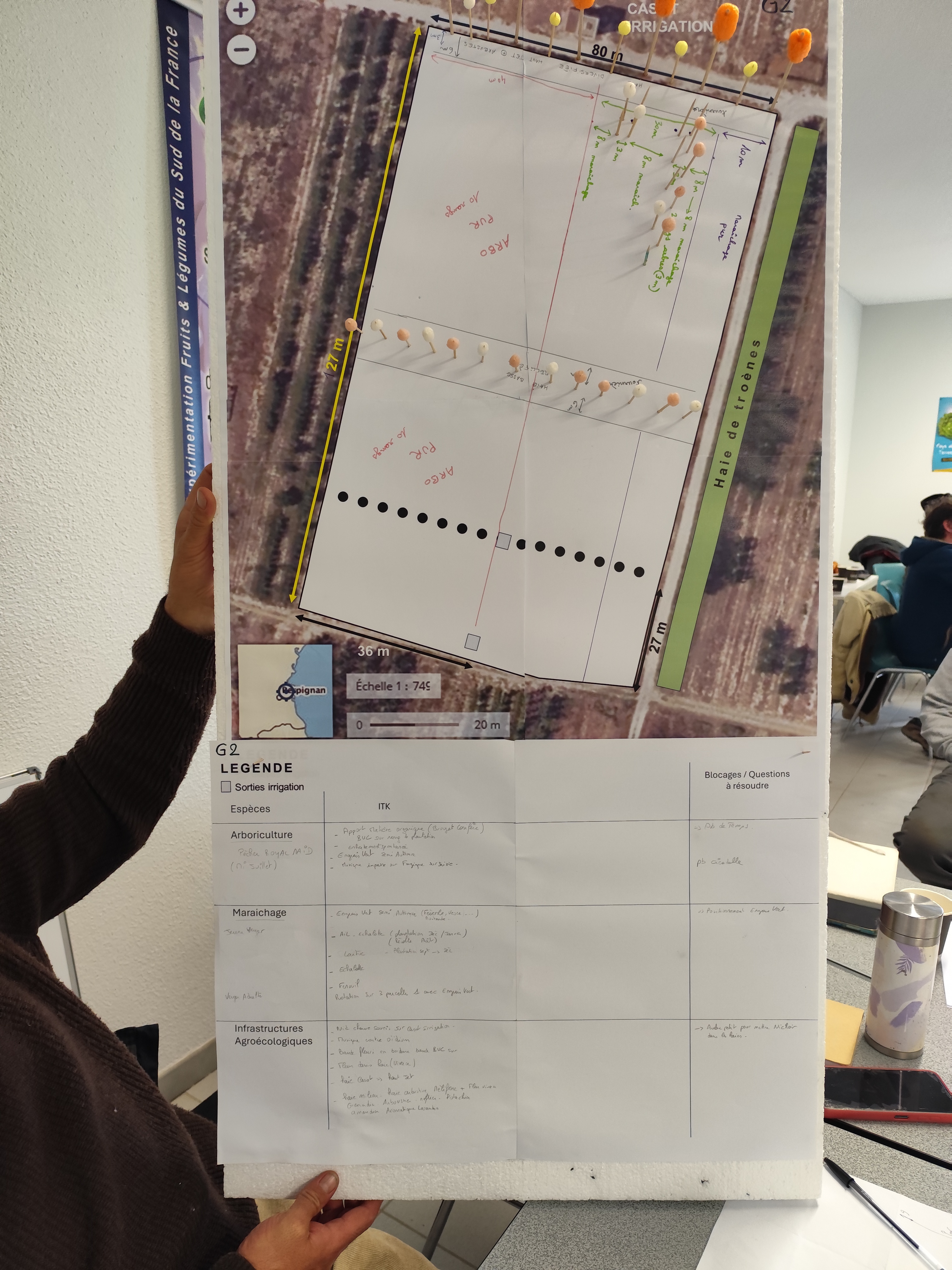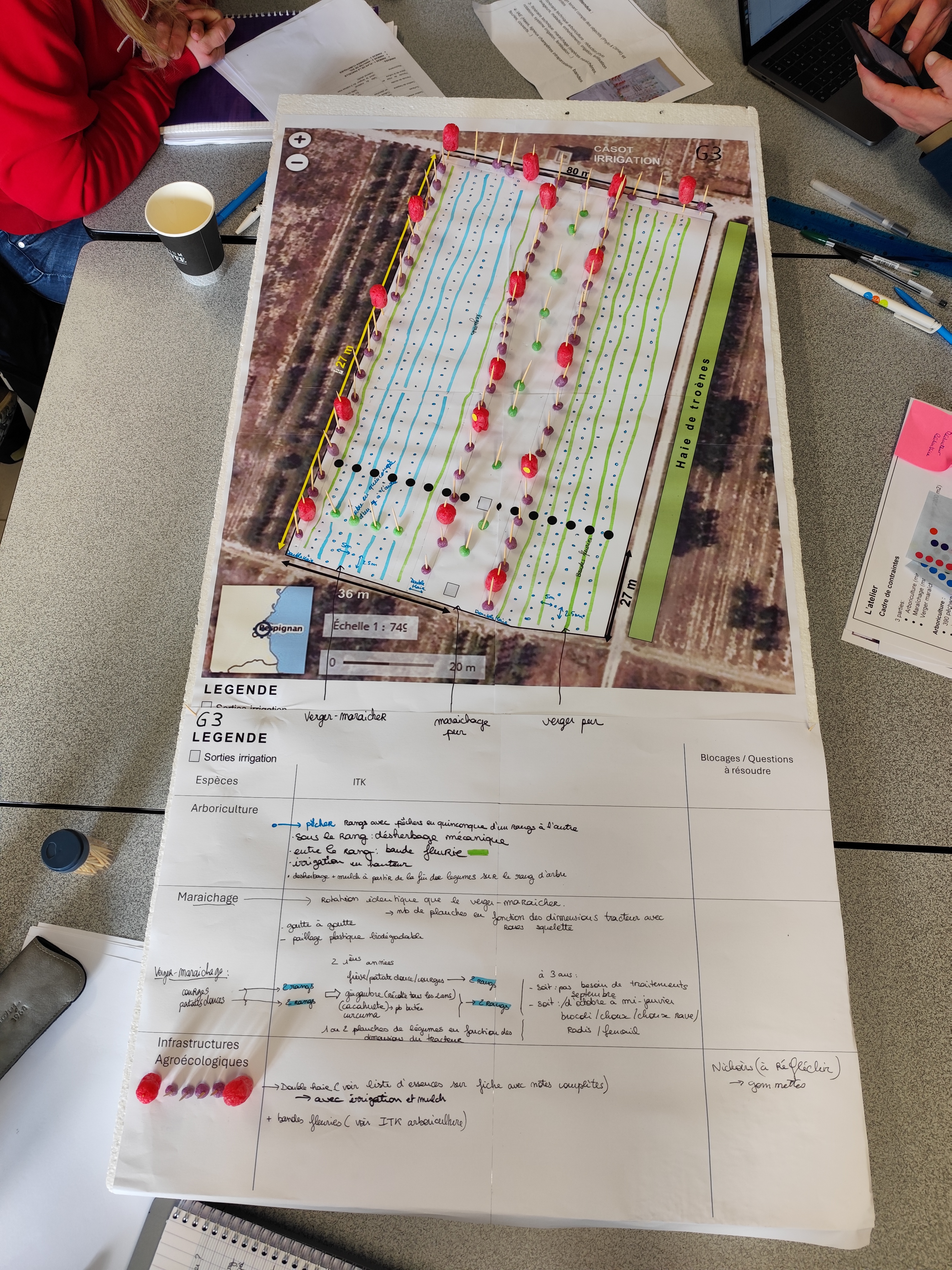 - 6 scénarios de verger-maraîcher expérimental adaptés au site INRAE d’Avignon en intégrant les contraintes agronomiques et matérielles identifiées.