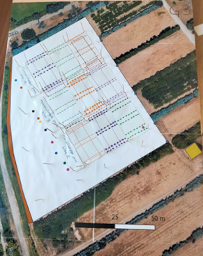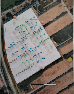 Objectifs : Concevoir un dispositif avec 3 secteurs verger de pêcher, verger maraîcher et maraîchage (essai factoriel) répondant aux enjeux